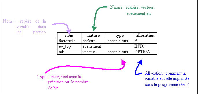 Le formalisme appliqué au modèle informationnel consiste en un simple tableau qui regroupe toutes les informations sur les variables utilisées dans une application.