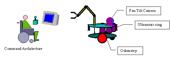 L'étude présentée dans [HOP97T] a permis de doter la base mobile d'une certaine autonomie de déplacement : un but étant fixé sur un plan de l'environnement, le robot l'atteint automatiquement. Nous avons ajouté une caméra au système initial de perception du robot. Celle-ci permet de retourner à l'opérateur une image de l'environnement prise du robot. La caméra choisie, motorisée et commandable à distance, possède un système intégré de suivi de cible. Cette fonction nous a permis de développer une seconde commande automatique : l'opérateur pointe un objet avec la caméra et le robot se dirige vers lui. A ces deux commandes automatiques s'ajoute une commande exclusivement manuelle où l'opérateur guide lui-même la base mobile avec deux retours d'information : la position donnée par l'odométrie et le retour vidéo. Une étude comparative de trois types de commande est réalisée en collaboration avec le laboratoire de psychologie expérimentale de l'Université de Rennes 2. Elle analyse les choix faits par différents sujets dans plusieurs situations quant à la conduite de la base mobile. L'objectif est d'examiner le comportement des opérateurs afin de leur proposer par la suite des stratégies intéressantes.